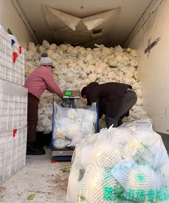 满车的菜花很快就销售一空(总台中国之声记者任梦岩 摄)