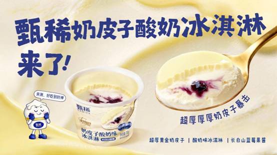 同期亮相的甄稀品牌推出奶皮子酸奶味冰淇淋,首次将传统奶皮子概念融入冰淇淋品类。该产品以100%生牛乳为基底,添加5mm以上厚度的奶皮子层,搭配长白山蓝莓果酱,形成层次丰富的口感体验,生产过程中采用完全密封热封膜技术,确保产品品质稳定。