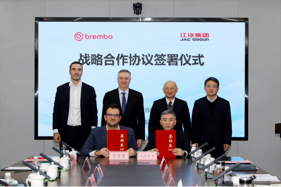 2月5日,江汽集团与布雷博(Brembo)在安徽省合肥市江汽集团总部签署战略合作协议。签约仪式上,江汽集团控股公司党委书记、董事长、总经理项兴初表示:“布雷博是全球制动技术领域的领导者,双方此前已在尊界S800项目上建立了坚实的合作基础。此次战略签约,开启了资源互补、协同创新的新篇章,双方将在更广阔、更深入的领域共同为用户带来更加安全、卓越的驾驶体验。”