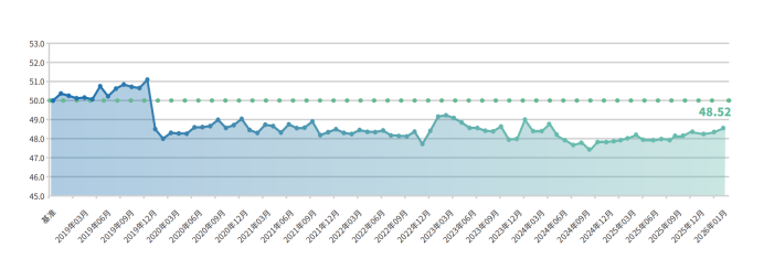 2026年1月,普惠金融-景气指数达49.60点,较2025年12月上升0.12点,近期连续2个月实现上升。信贷旺季叠加财税金融政策发力,企业融资环境持续优化;消费需求恢复,政策带动小微企业经营指标向好,市场信心进一步巩固。