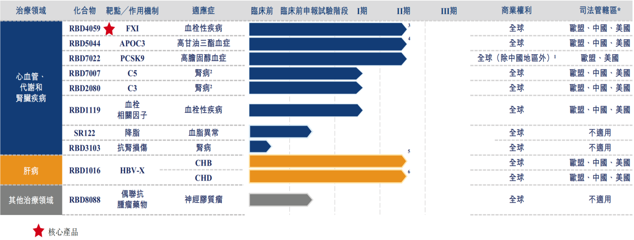 作为一家从事小核酸药物研究和开发,尤其专注于siRNA疗法的生物制药公司,瑞博生物于2026年1月9日在H股上市,凭借其拥有自主知识产权且已通过临床验证的GalNAc递送技术的RiboGalSTARTM平台,公司已在心血管、代谢、肾脏及肝脏疾病领域,从药物发现到临床开发全程持续自主推进了多个siRNA项目(如下图所示)。