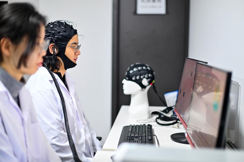 2026年2月27日,在位于天津滨海高新区的一家公司,工作人员进行脑机接口技术测试。新华社记者 赵子硕 摄
