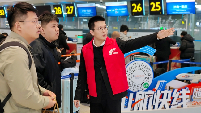 山航集团团委高度重视、精心部署,紧扣地面服务部一线保障需求,规划服务时段覆盖2月6日至13日、2月24日至3月3日(含周末)客流高峰,每日9时至16时。上岗前,集团团委统筹联合地面服务部、志愿者协会开展线上培训,内容涵盖自助值机、特殊旅客服务、“三超”行李卡阻等实用技能和服务保障专业规范。