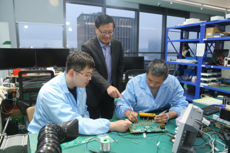 图为诺瓦聚变科研人员攻克FRC‑SMR 控制难题,Demo板卡实现纳秒级精准测量的场景。