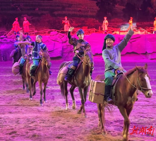《茶马雄风》此次升级,始终坚守“勇敢、坚韧、诚信”的茶马精神底色,延续“文旅+非遗”的融合发展模式,深度融入土家族甑蒸茶制作技艺、蒙古舞等非遗元素,生动展现了湘西人民与草原人民的民族团结与文化交融,让茶马文化在新时代焕发新活力。