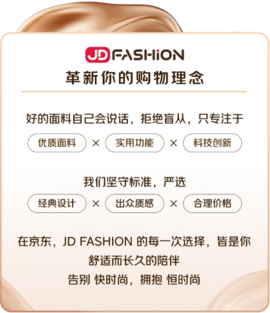 2025年,京东服饰持续发力品质建设,上线“JD FASHION”品质标签。但凡打标的服饰产品,均经过京东服饰采销严格甄选,通过对面料、工艺的多维度检测与筛选,在面料与工艺上达到高标准要求,既为消费者提供高效、便捷的品质消费渠道,也让更多真正用心选面料、磨工艺、强功能的品牌被市场看见,让“看得见的品质”成为消费决策的核心参考。