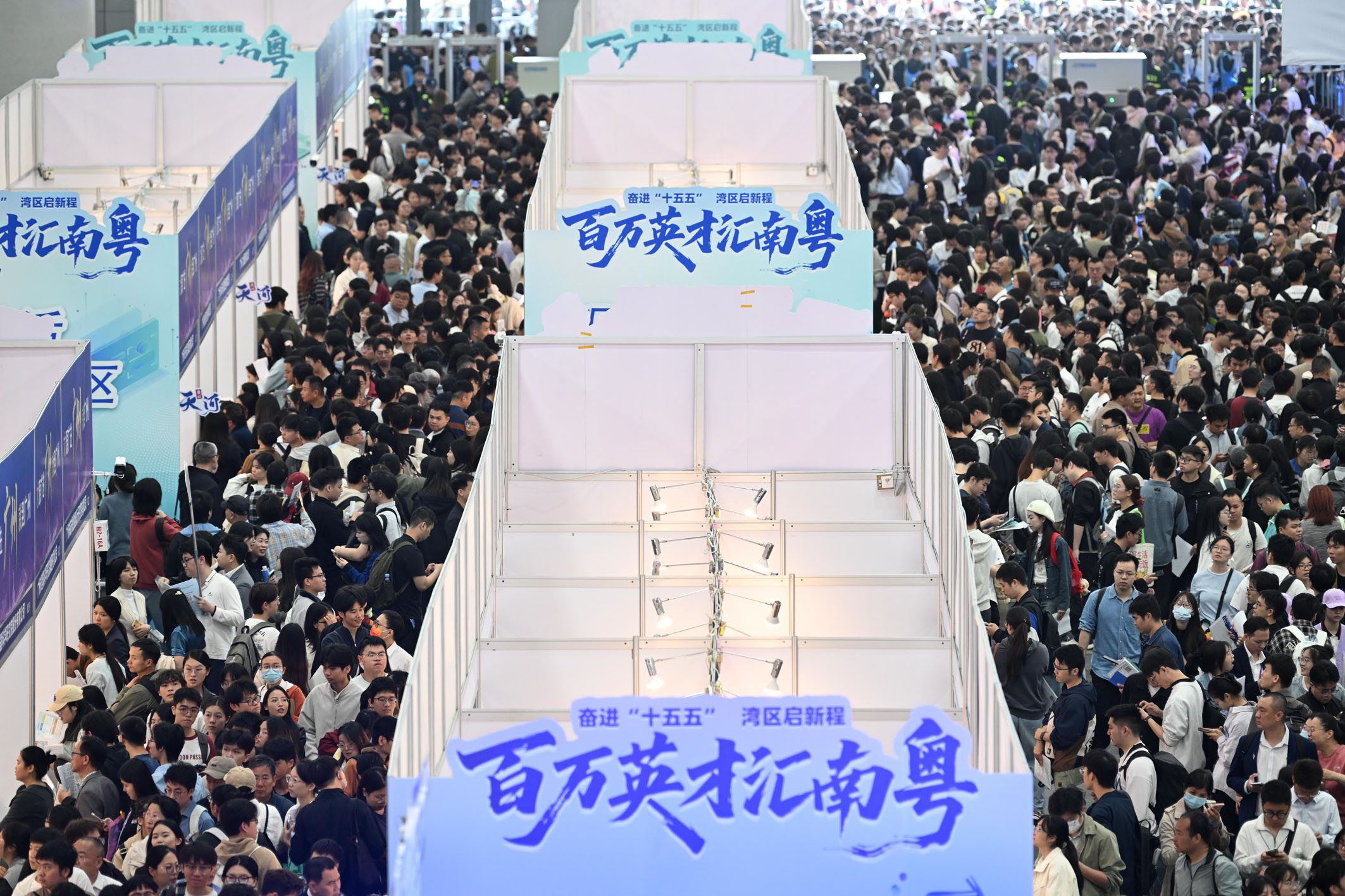 3月15日,“百万英才汇南粤”2026年春季大型综合招聘会在广州的中国进出口商品交易会展馆开幕。这场以“粤聚英才 粤见未来”为主题的人才盛会,汇聚近2000家头部单位,提供超8.5万个岗位。图为当日拍摄的招聘会现场。