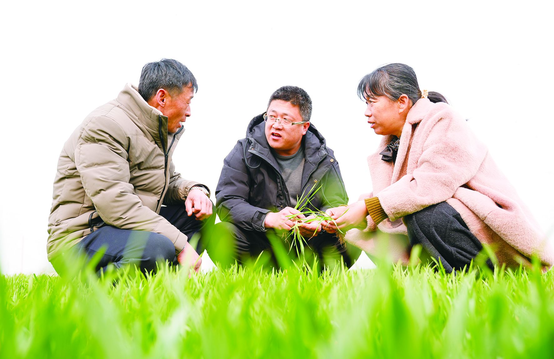 3月18日,在安仁镇齐庄村,禹城市农技专家陈立娟在田间地头为种植户现场支招:弱苗要及时借墒追肥、促弱转壮;壮苗则适当推迟水肥管理,确保大蘖成穗;还得警惕茎基腐病、纹枯病,趁未封垄及时防治。