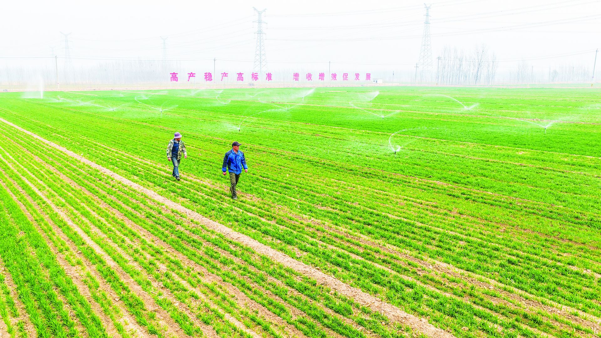 在伦镇台楼村高标准农田示范区,“田管家”高岩轻点屏幕,智能喷灌设备应声启动,细密水雾均匀洒向麦田。这片高产示范田捷报频传:2024年小麦亩产达到650公斤,2025年再攀新高,突破660公斤。“丰收密码,正是藏粮于地、藏粮于技。”高岩解释道,良田打底,地块平整、渠路相连、能灌能排;良种引路,济麦22、山农40等优质高产品种连片种植;良法配套,精量播种、水肥一体化等关键技术落地见效;良机护航,智能装备精准作业,让每一寸耕地都成为稳产高产的沃土。