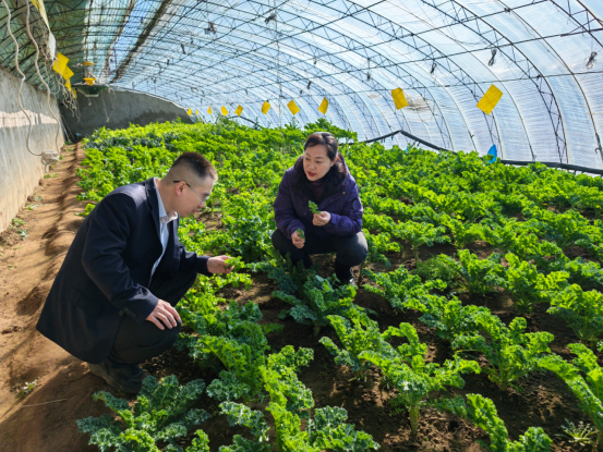 图为农行秦皇岛分行客户经理走进蔬菜大棚服务种植户。