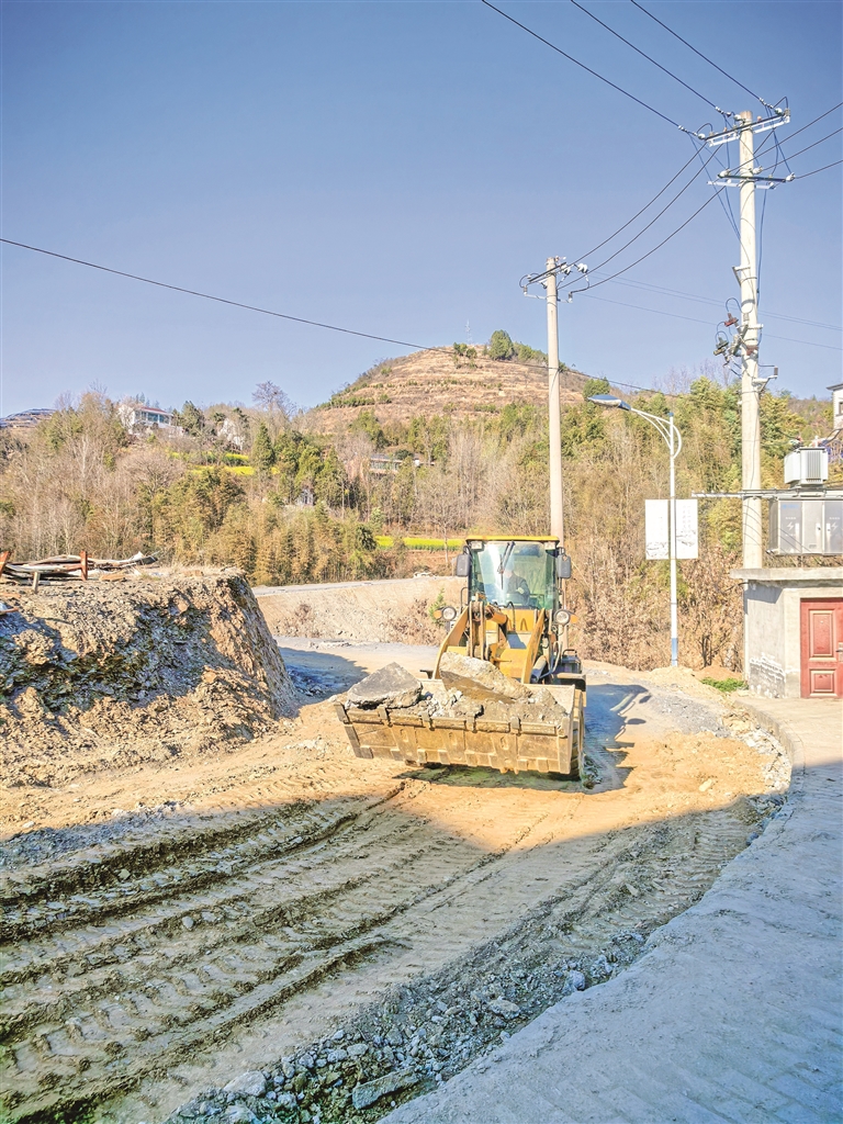 走进关家镇关家社区道路、桥梁改造以工代赈项目施工现场,挖掘机来回穿梭,工人们忙着堆砌路基、平整路面,个个干劲十足。