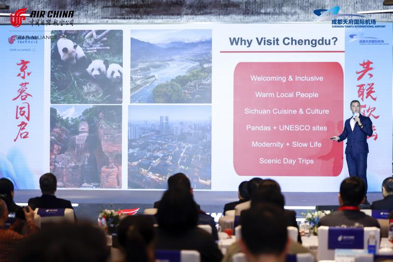 在发布会现场,北京、成都两地联合进行推介,航线开通后将为亚欧大陆人员往来、经贸合作及文化交流搭建便捷高效的空中桥梁。