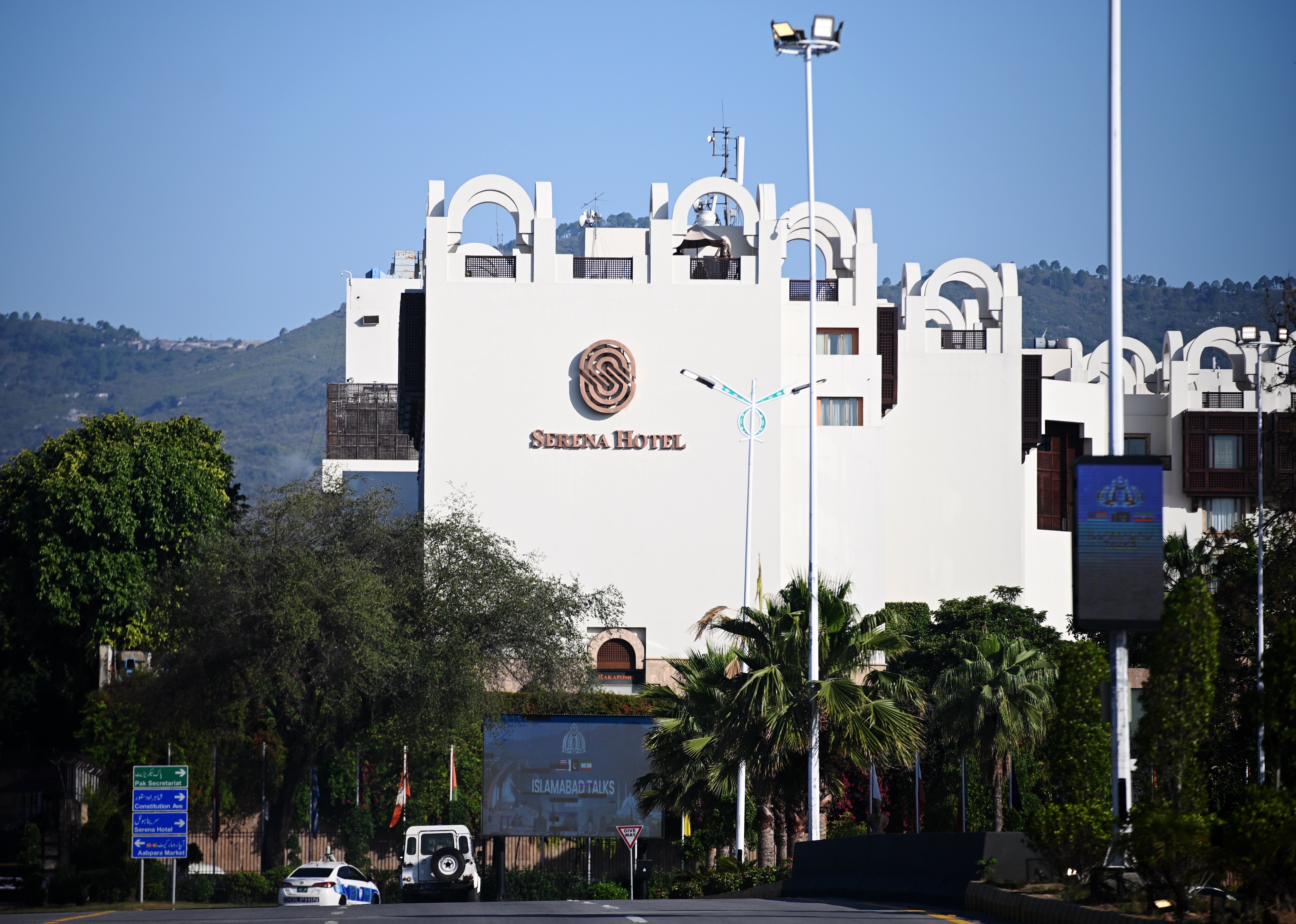 据伊朗塔斯尼姆通讯社4月12日报道,伊朗与美国在巴基斯坦首都伊斯兰堡举行的谈判结束,“美国的过分要求阻碍了共同框架和协议的达成”。图为4月12日在巴基斯坦首都伊斯兰堡拍摄的谈判举行地点塞雷纳酒店外景。