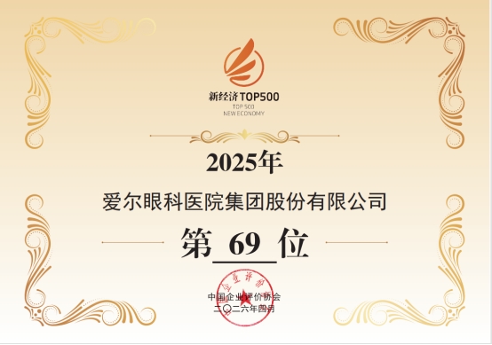 近日,中国企业评价协会联合中指研究院在京正式发布《2025中国新经济企业TOP500发展报告》及系列榜单,并指出“新经济竞争重心正由流量主导转向创新驱动”。爱尔眼科医院集团股份有限公司(以下简称“爱尔眼科”)凭借扎实的创新实践及突出的发展成果,连续五年入选“中国新经济企业500强”榜单,位列第69位,较去年排名提升4位。