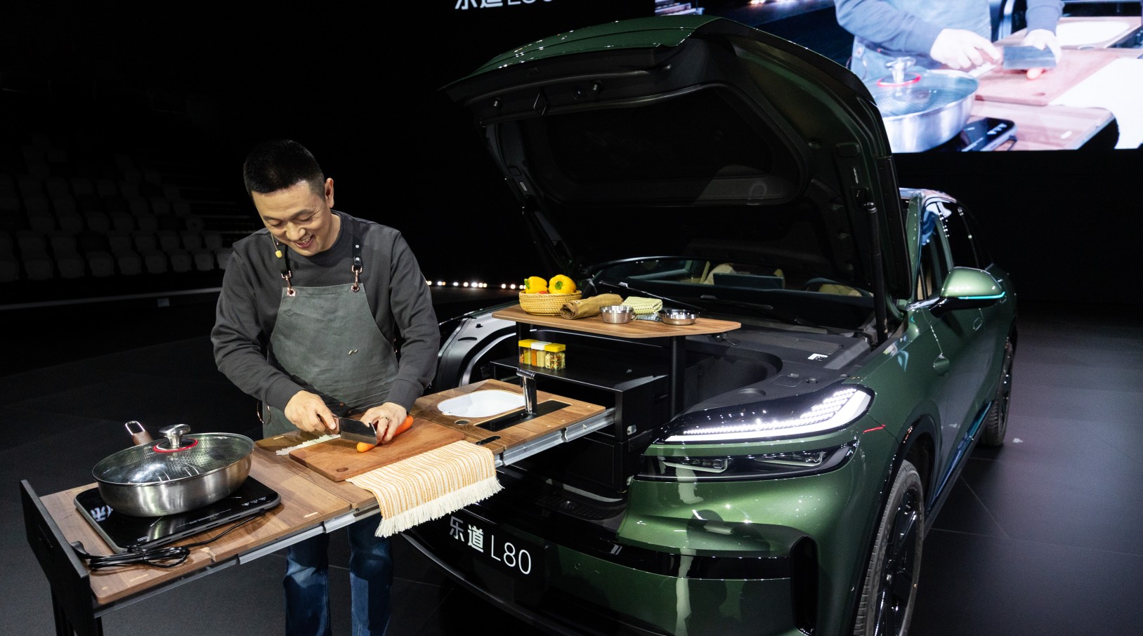 蔚来创始人、董事长、CEO李斌在乐道L80产品技术发布会现场秀厨艺