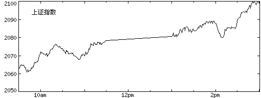 来自沪深证券交易所的最新数据显示,30日上证综指以2058.77点高开后一路上行。接近收盘时,沪指一鼓作气突破2100点整数关口,摸高2102.06点。但这一令人兴奋的走势并未能保持多久,沪市最终报收于2099.29点,较前一交易日上涨2.20%,并再度创下5年来新高。