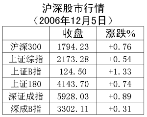 5日,深沪大盘继续震荡上攻,但随着股指的进一步上扬,短线上行压力逐步增大,午后股指掉头向下,盘中一度出现大幅跳水,尾盘有所企稳,总体上仍然维持高位震荡的走势。上证综指最终收出带较长上影线的小阳线,成交量进一步放大。深证成指走势相似,也呈现了冲高震荡的走势。