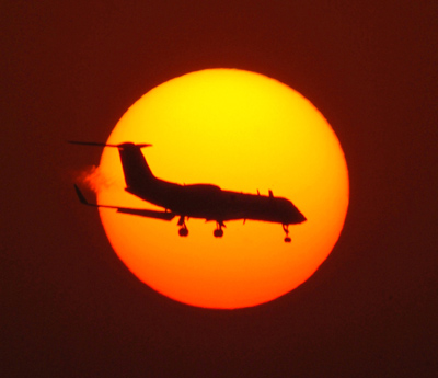 3日,在印度首都新德里,一架飞机在日落时分飞行。由于空中交通持续拥堵,从12月起,印度的国内航线开始征收交通拥堵附加费,每张国内机票因此涨价150卢比(约合3.3美元)。