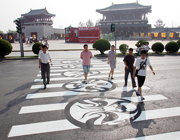 从2009年7月这两条斑马线出现以来,就吸引了很多西安市民的目光。许多路过的市民和游人经过时都会驻足观看,甚至有一些人在旁边合影留念。新出现的创意斑马线,俨然成了又一个吸引人的亮点。