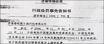 | 先不论政府为航空公司的机票价格发布“指导价”的做法是否合理,单就物价部门的处罚仅仅针对春秋航空公司的做法就值得商榷。事实上,不仅是进入国内的外资航空公司纷纷推出的更低票价没有受处罚。[详情] | | |