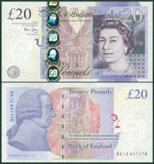 其实英国英格兰银行是在2007年4月13号就发行了新版的20英镑的纸币,随后旧版和新版共同使用,从今天开始就可以完全使用新版的20英镑的纸币了。亚当