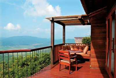 三亚鸟巢距亚龙湾一线海景真的只有一线之隔,从湾口上山,只需10分钟时间就能扶摇云上,抵达海拔450米的虹霞岭主峰。其间路过的盘山路,正是在影片中被影迷评价“毫不逊色北海道”的景区盘山路,如果你是入住鸟巢的宾客,还将获得比影片中秦奋和笑笑还要奢华的免费接送服务——清一色美女车队和陆虎豪车。如果你懂得园艺,雨林里的黄檀、金合欢、桃金娘、白茶、海南苏铁等会成为最好的舞台,即使是植物菜鸟,至少也能认出山间“只手遮天”的千年老榕。如果你想更加环保,就抛下陆虎从兰花谷上山吧,这条浪漫山路的氛围像极了小龙女和杨过厮守的绝情谷底,可以看到吸风饮露的万代兰,热带原始雨林里难得一见的“空中花篮”等奇观。