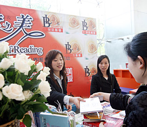 | 2006年4月23日“世界图书日”当天,贝塔斯曼书友会上海会员中心展开主题为“阅读之美”的图书义卖活动。新华社记者