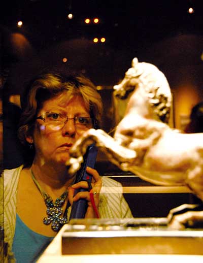 8月18日,一名参观者在比利时首都布鲁塞尔举行的《欧洲天才-达·芬奇展》上观看达·芬奇的雕塑复制品。《欧洲天才-达·芬奇展》当日在布鲁塞尔举行,展览计划持续7个月。共有250件达·芬奇作品展出,包括油画、素描、雕塑、设计手稿等,其中原作达100多件,完全由达·芬奇本人完成的作品有17件。