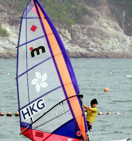 2004年10月21日,中国香港运动员李丽珊在比赛中。当日,为期四天的香港帆板公开赛在中国香港赤柱举行,共有来自中国、日本、泰国、中国台北、中国澳门及中国香港等地的30多名男女运动员参加此项赛事。