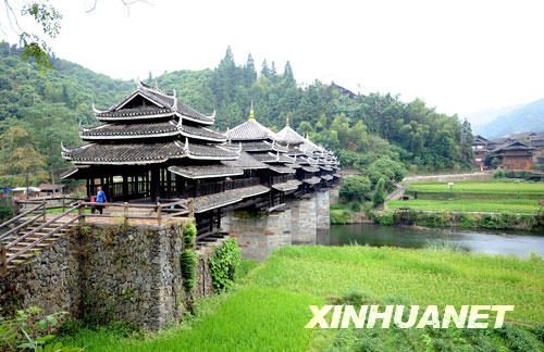 这是建筑精巧奇特的侗寨风雨桥(9月25日摄)。
