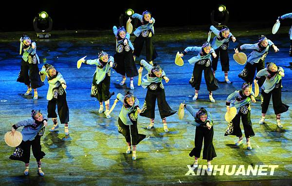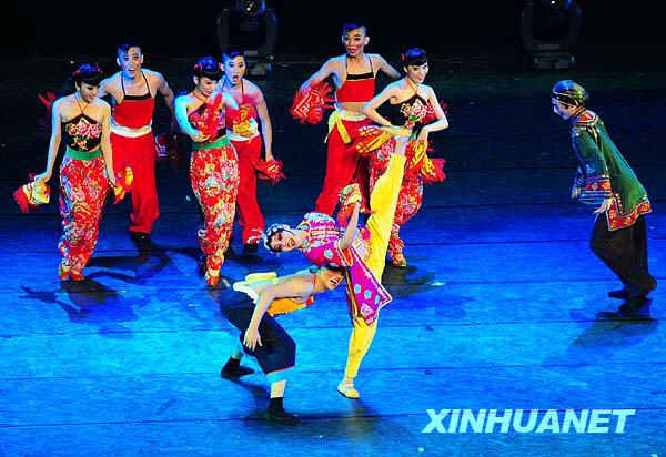 8月23日,沈阳音乐学院舞蹈学院的演员表演具有浓郁东北风情的男女群舞《姥家门口唱大戏》。 |